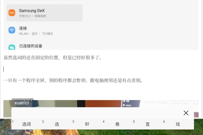 一旦有一个程序全屏,别的程序都会暂停。跟电脑使用还是有点差别。