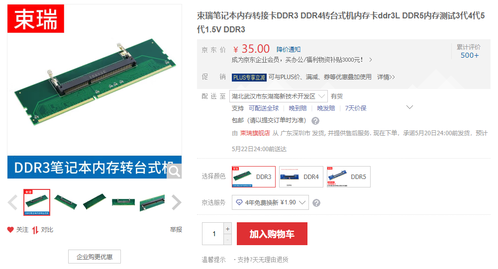 一搜索居然还真有这种转接卡,可以把笔记本内存转成台式机能用的。