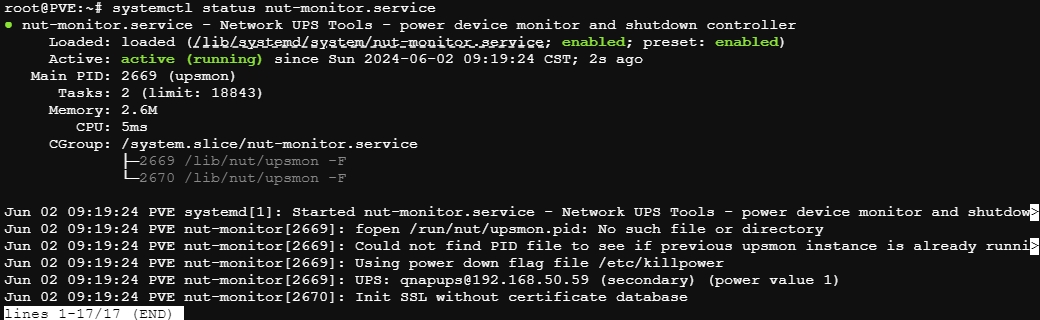 重启nut服务让配置生效。