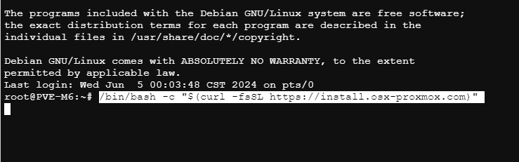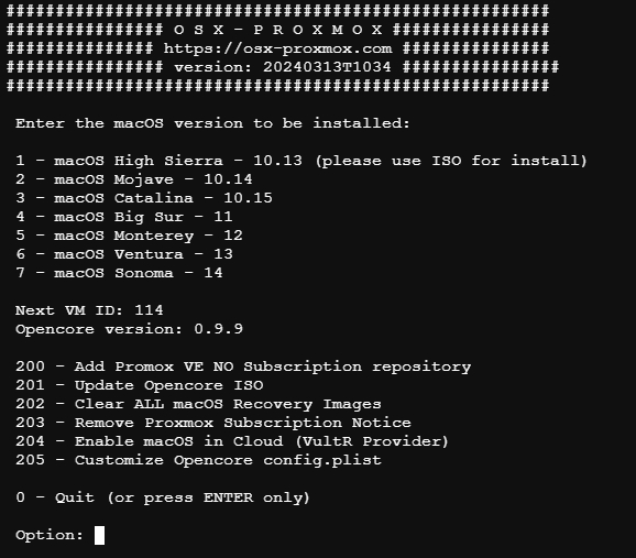 /bin/bash -c “$(curl -fsSL https://install.osx-proxmox.com)”
