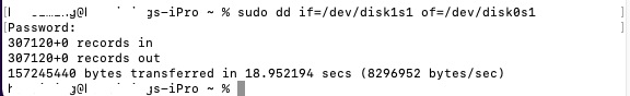sudo dd if=/dev/disk1s1 of=/dev/disk0s1
