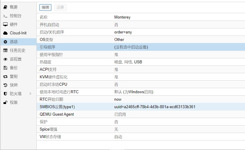 先在硬件配置里删除掉,然后克隆一个出来,再把引导配置加进去。