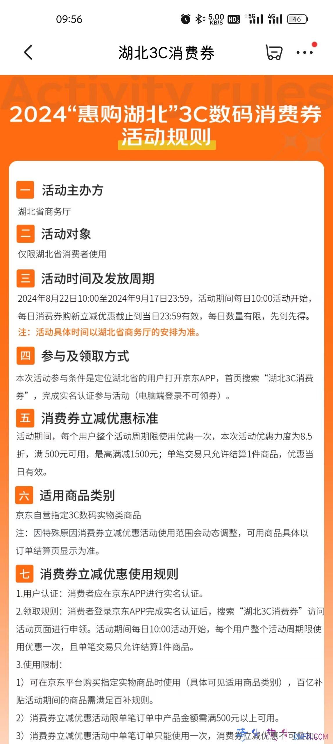 湖北3C数码产品消费券 2024-8-22 10:20 | BIEKUA | 246 | 生活 | 2024-8-22 13:07 79 字 | 1 分钟内 本文最后更新于 483 天前,其中的信息可能已经有所发展或是发生改变。线下:支付宝 线上:京东 时间:2024年8月22日至9月17日 支付宝上需要领券,京东上好像是直接买,上面有提示是政府补贴15%。 不知道是不是先调高价格再优惠的。