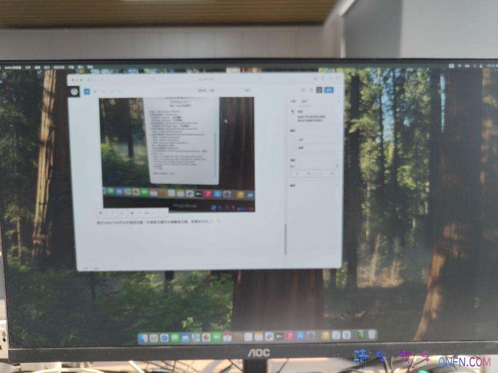 通过typec hub转hdmi可以外接显示器,外接显示器作为镜像显示器,效果还可以。magicbook确实挺适合装mac系统的,轻薄本颜值可以。也有可能是我的那个显示器分辨率特殊,所以显示就闪一下就不显示了。我那个是带鱼屏显示器,可能是这个原因吧。