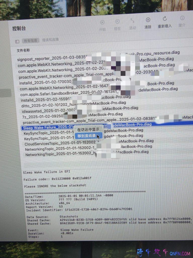 黑苹果每次开机都会弹出“电脑关机是因为发生了问题” 2025-1-03 7:21 | BIEKUA | 209 | 生活 | 2025-1-03 12:20 57 字 | 几秒读完 本文最后更新于 349 天前,其中的信息可能已经有所发展或是发生改变。 每次开机都会弹出提示 解决办法:打开“控制台”再打开“诊断报告”删除sleep开头的报告,再次开机就不会出现这个提示了。