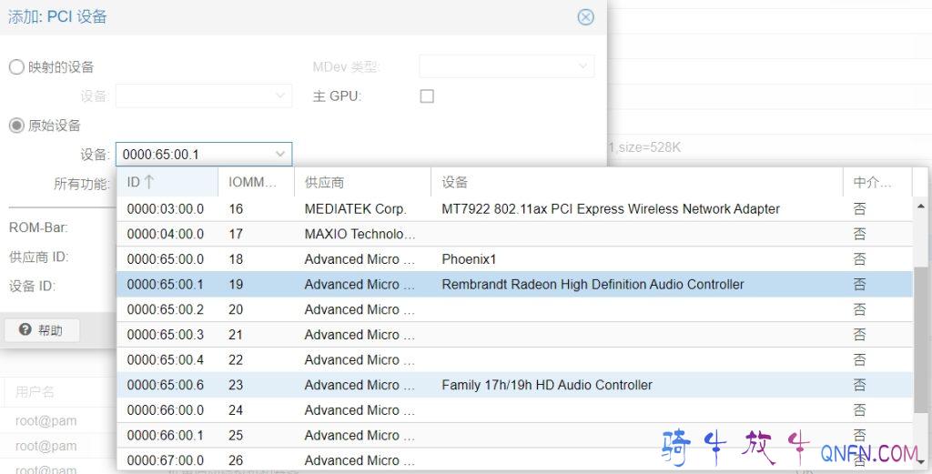 在hostpci0: 0000:65:00.0,pcie=1后面添加,romfile=gmkK6pve.rom